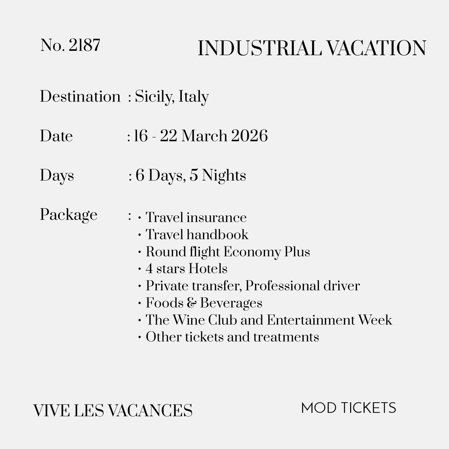 Travel insurance, Travel handbook, Round flight tickets, Private transfer and professional driver, 4 stars Hotels, Regular Foods and Beverages, Event tickets and treatments.